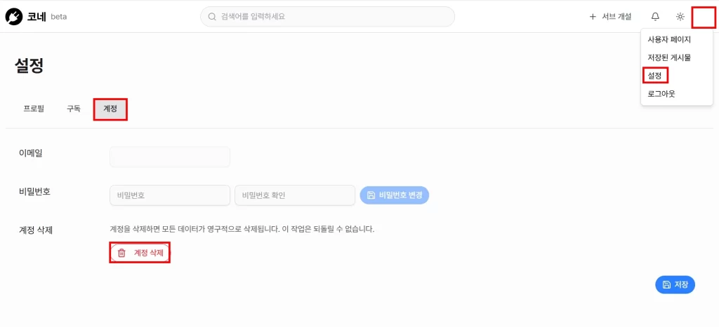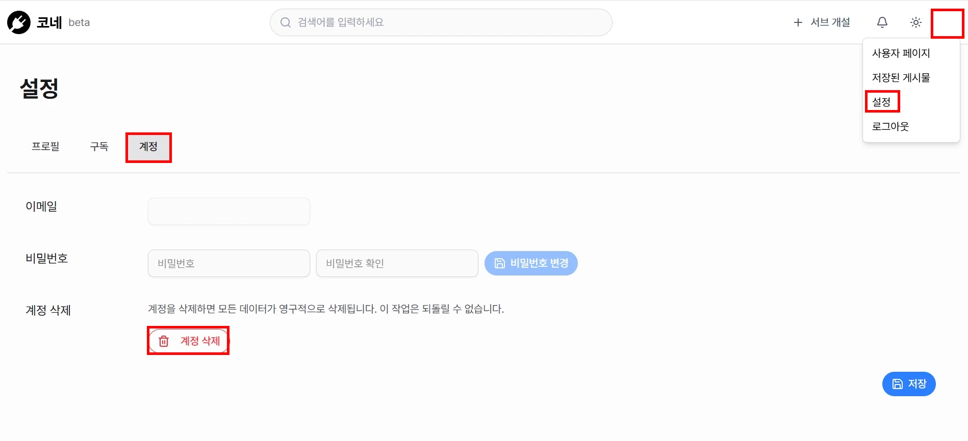 코네 회원가입 후 회원 탈퇴를 진행하려면