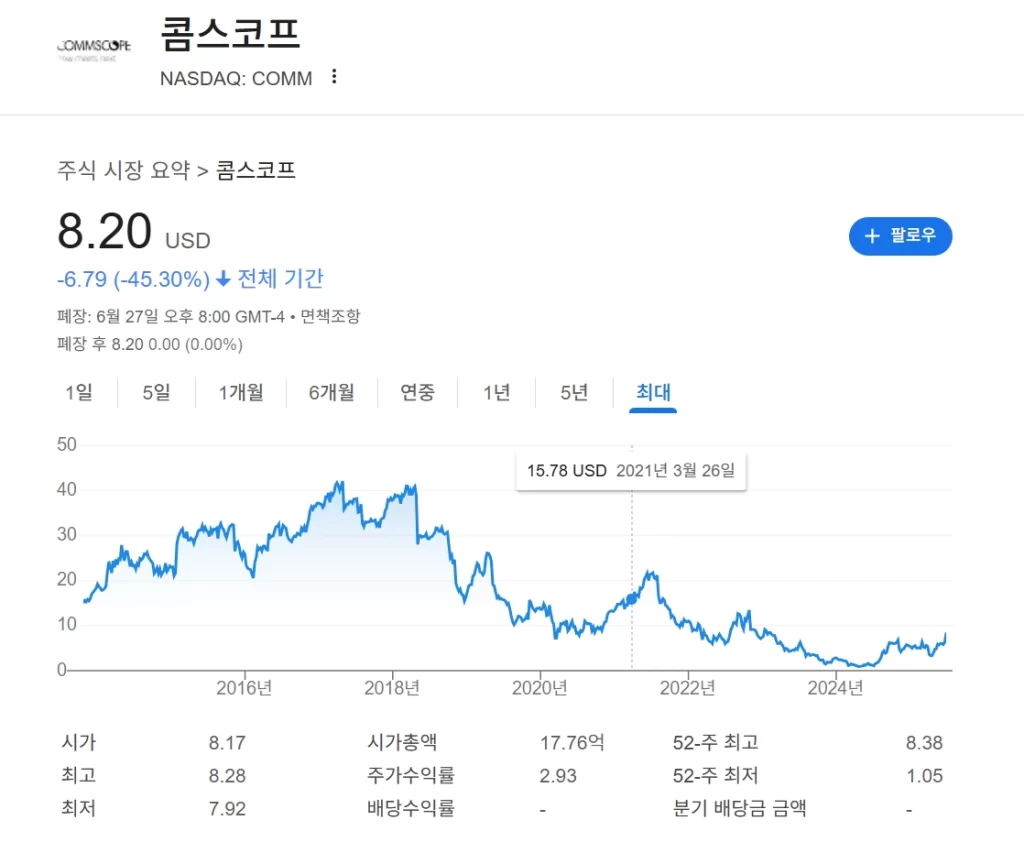 콤스코프 홀딩스(COMM)의 주가는