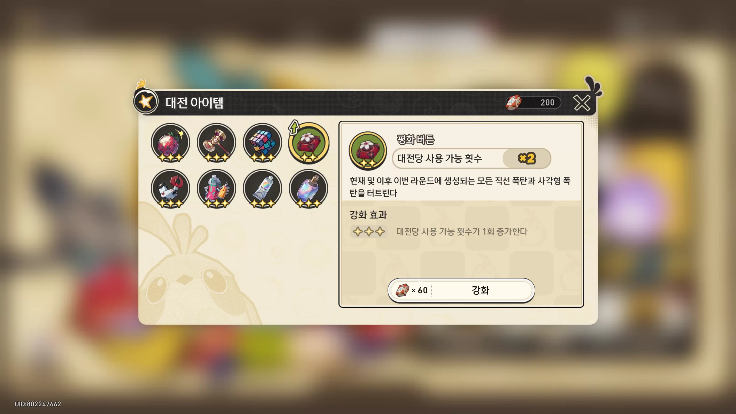 대전 아이템을 모두 3레벨까지 업그레이드 하면