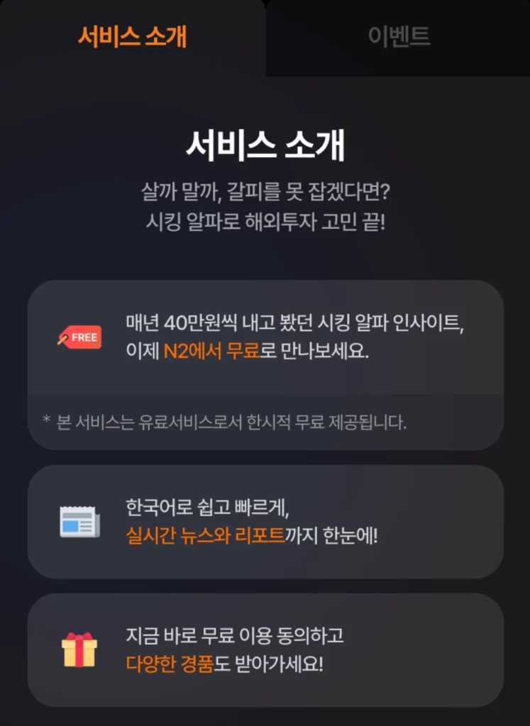 NH투자증권에서 시킹알파와 독점 제휴를 맺어서