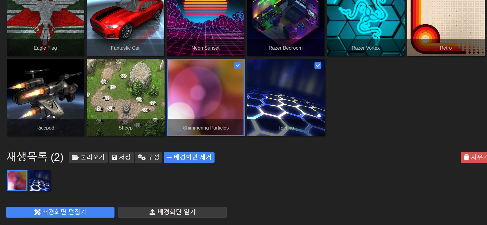 배경화면 우측 상단의 체크박스를 클릭해주면