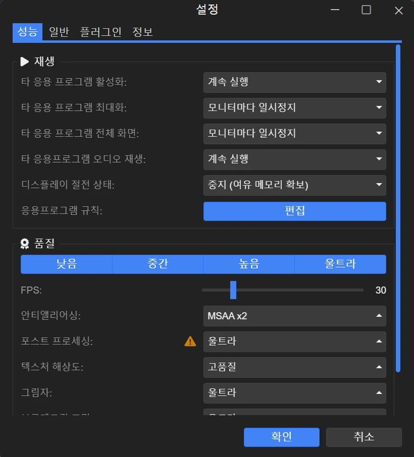 FPS를 낮춰주면 대부분의 렉을 줄일 수 있다