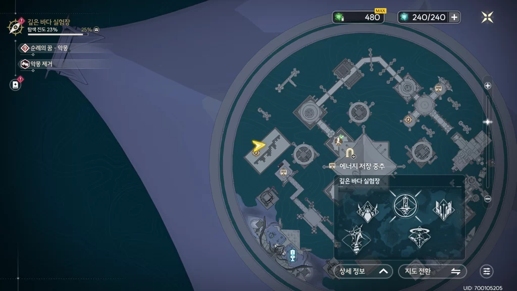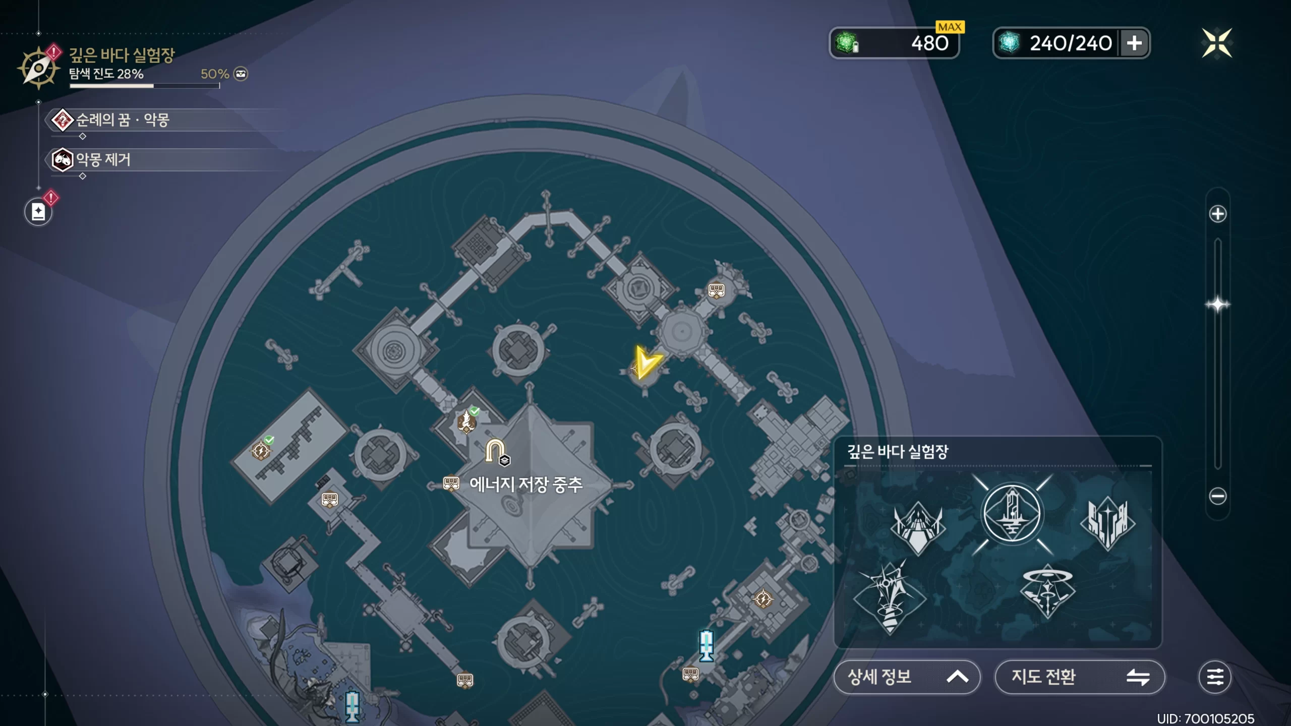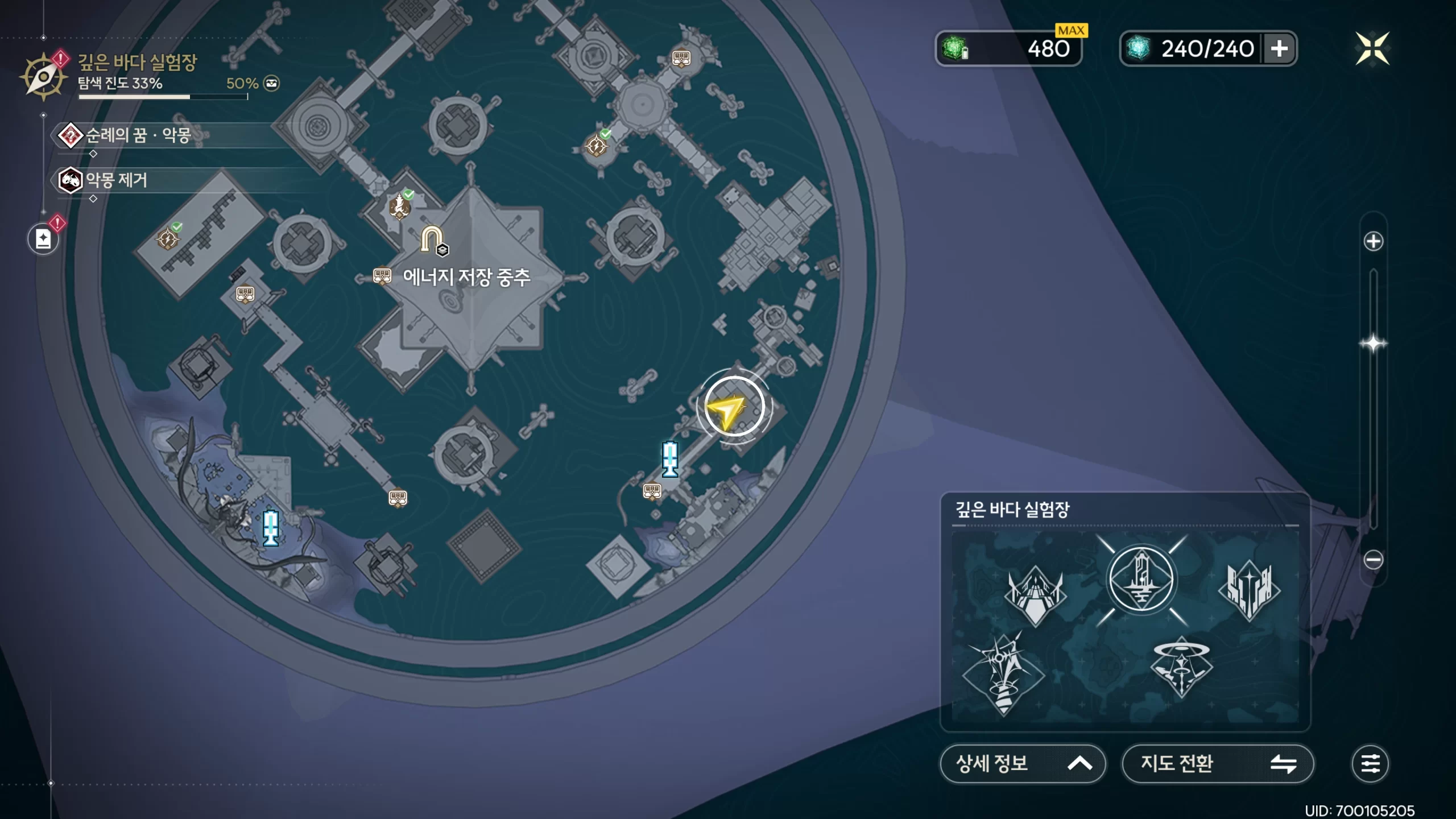 명조 깊은 바다 실험장 에너지 수송관 연결 위치
