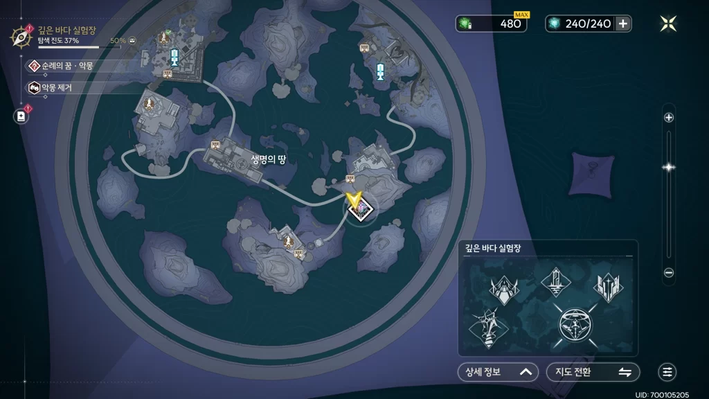 명조 깊은 바다 실험장 순례의 꿈 악몽 위치