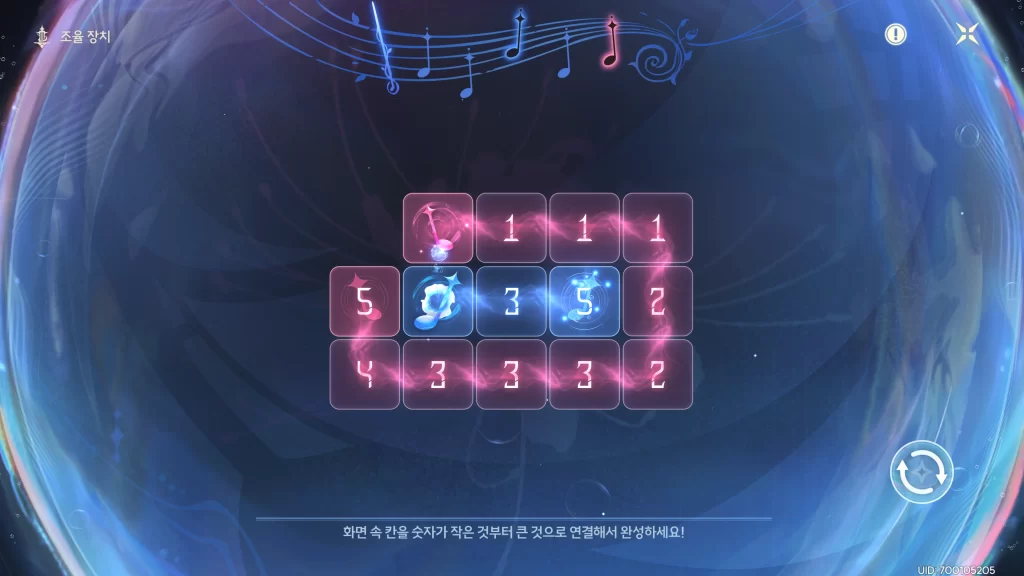 명조 깊은 바다 실험장 곡의 조율 위치