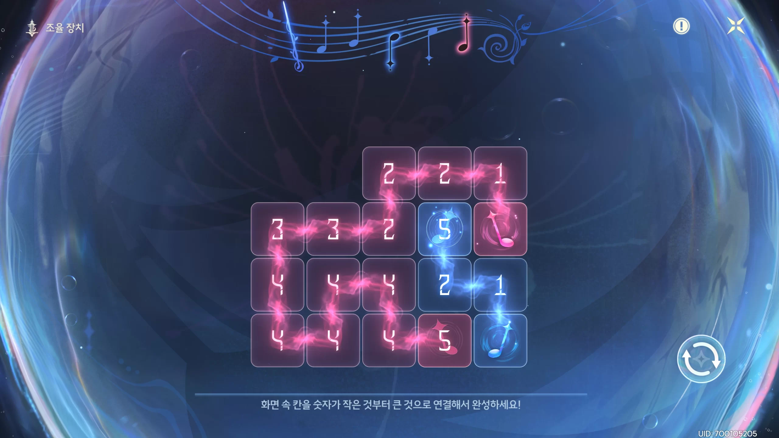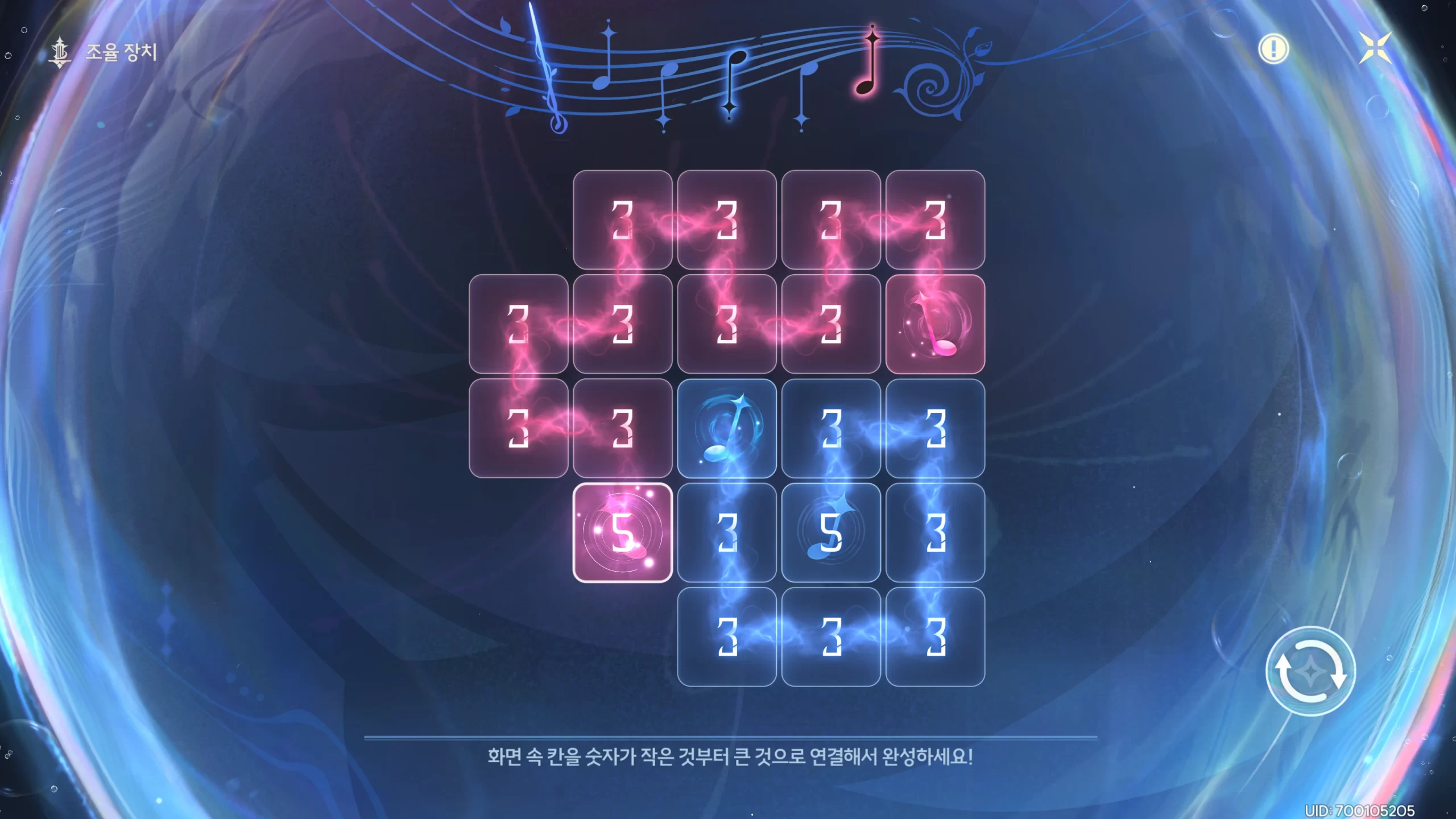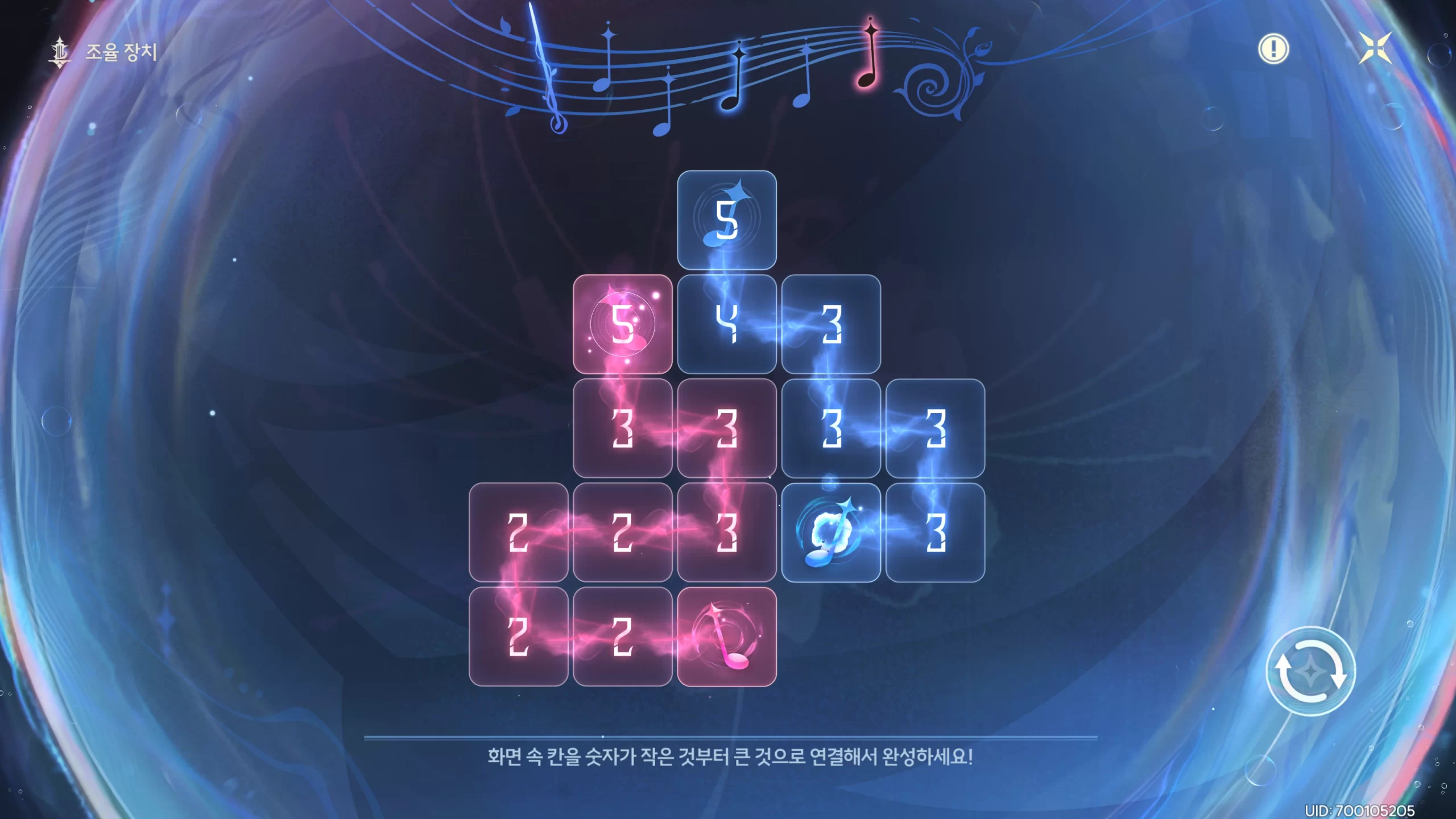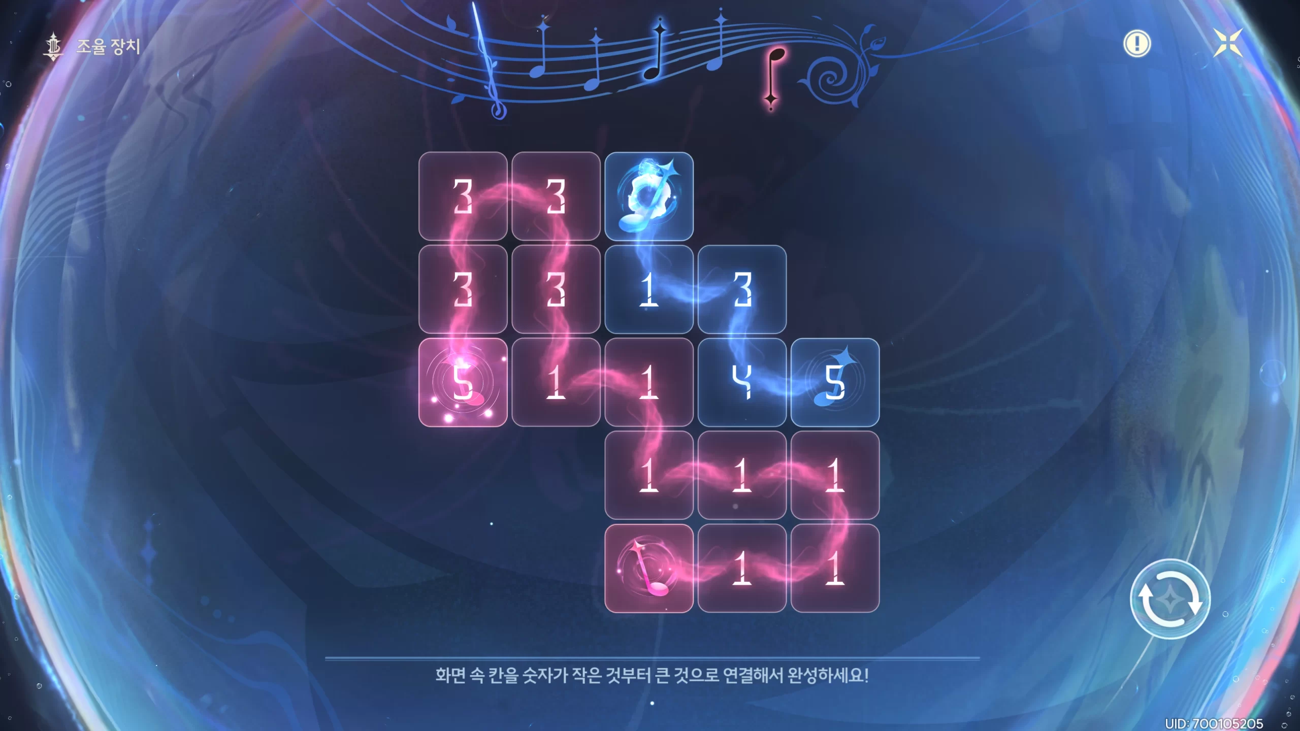 명조 깊은 바다 실험장 곡의 조율 위치