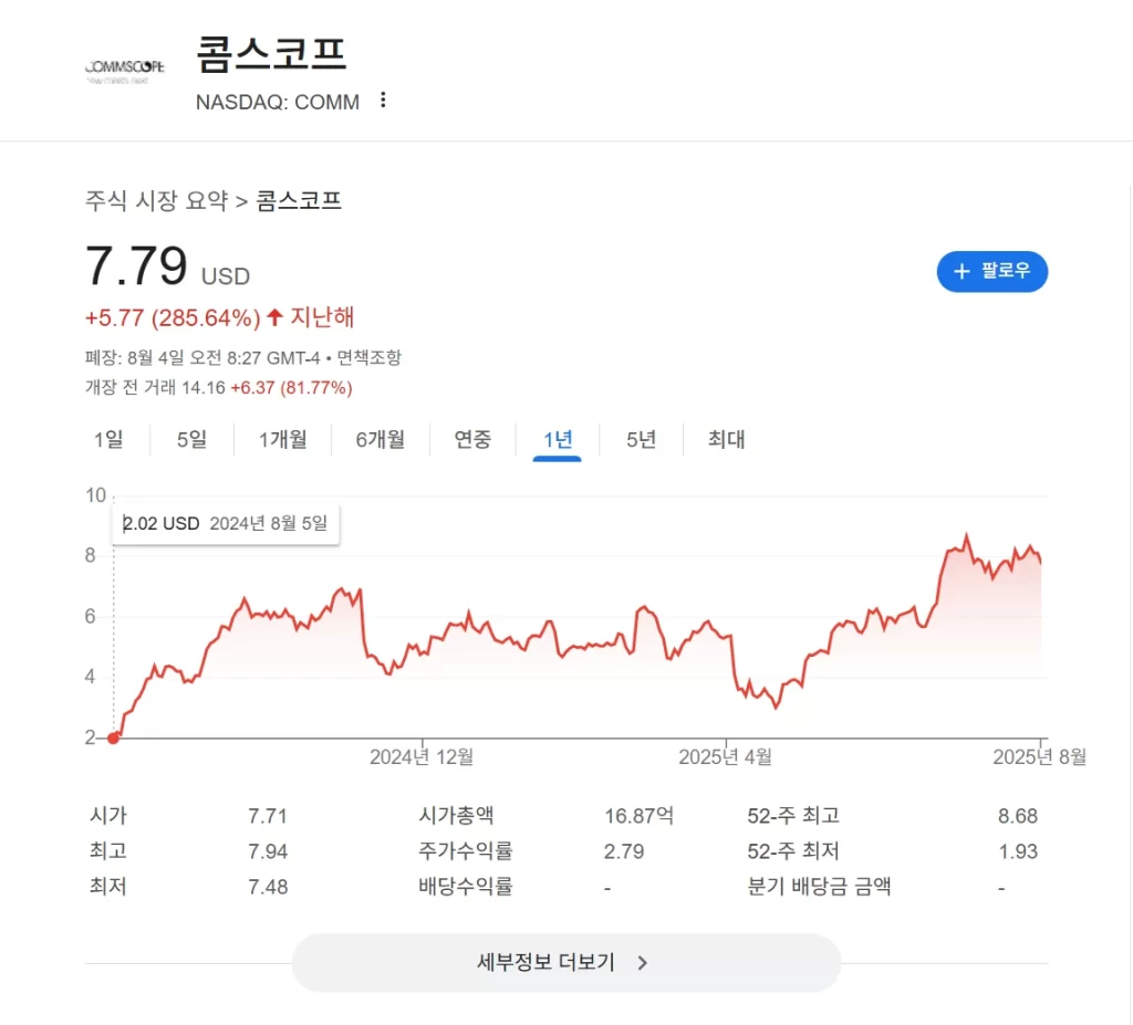 콤스코프 홀딩스가 수혜를 보고 있는 것인데
