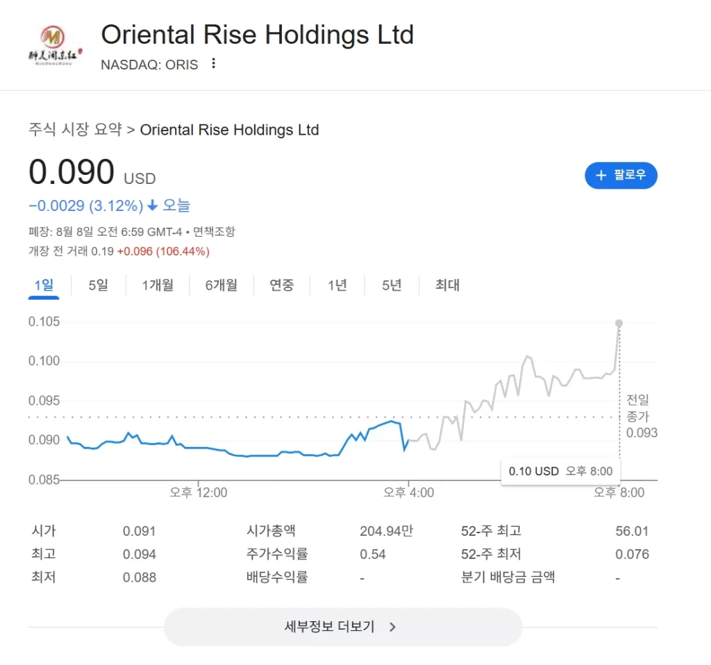 하지만 ORIS는 이런 작은 호재에도 움직일 정도로