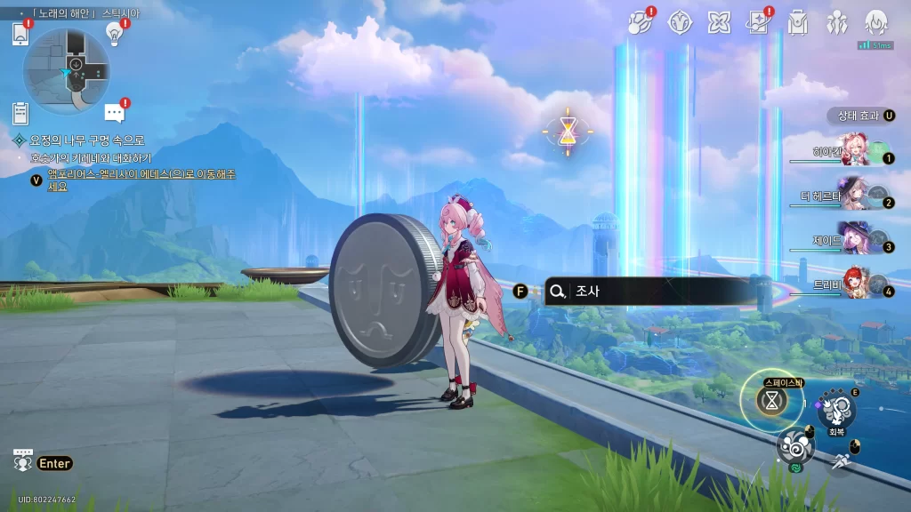 동전 뒷쪽에서 스페이스를 눌러 상호 작용이 가능한데