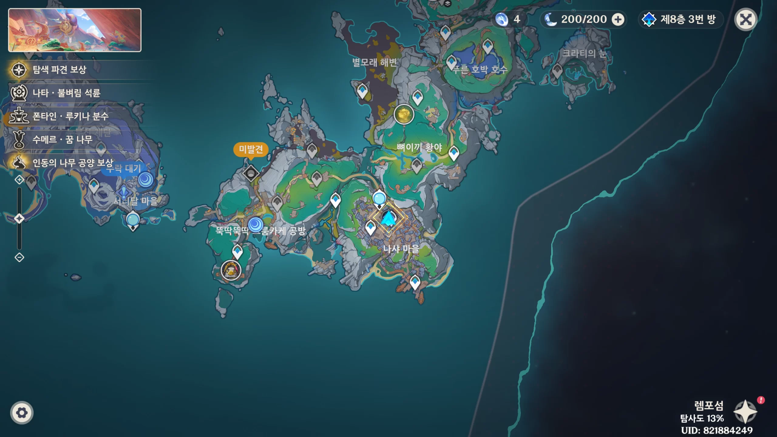 원신 유팡키와 회고의 불 해당 임무는 지도 위치로 이동해서휴니에게 말을[...]