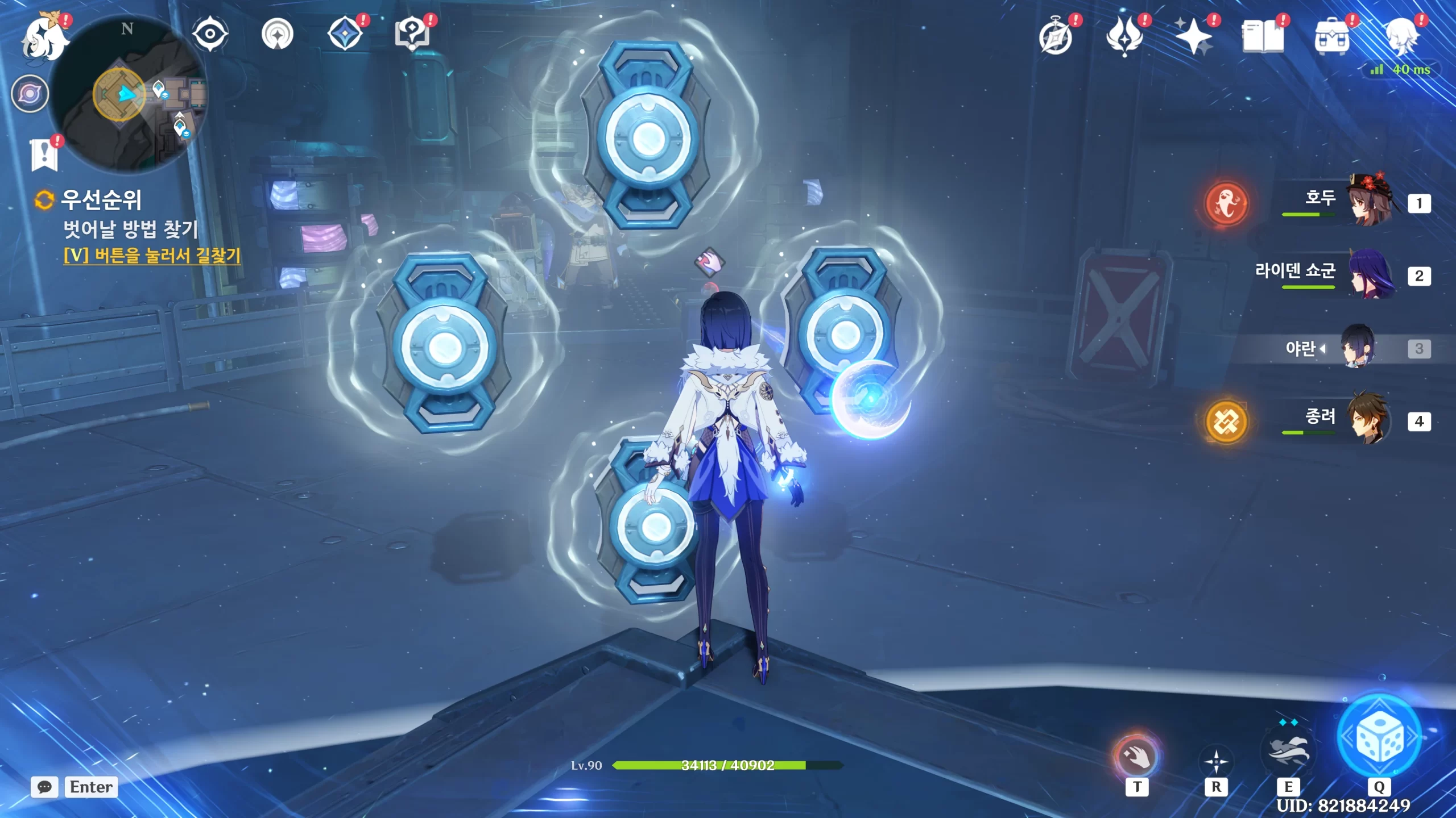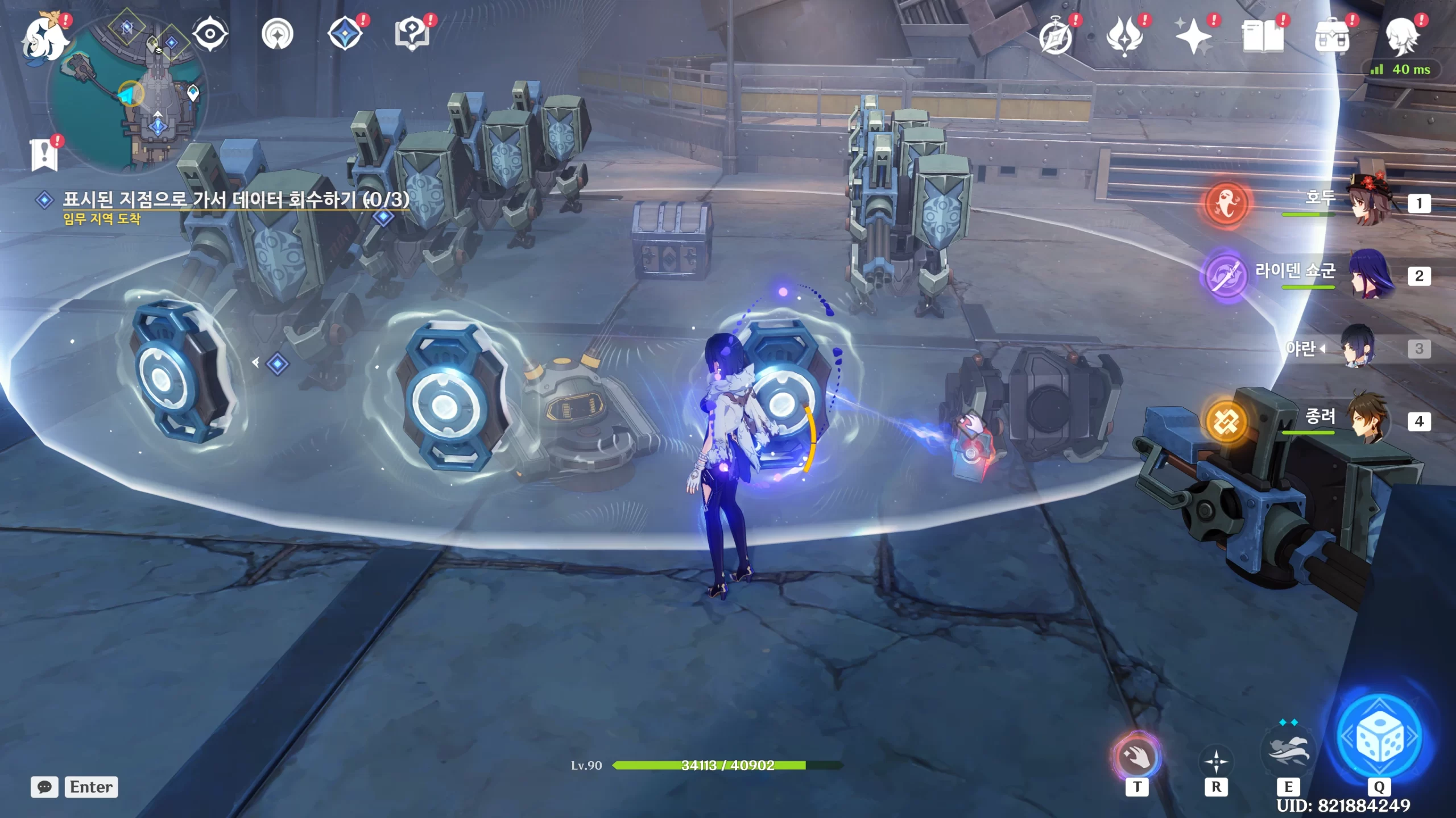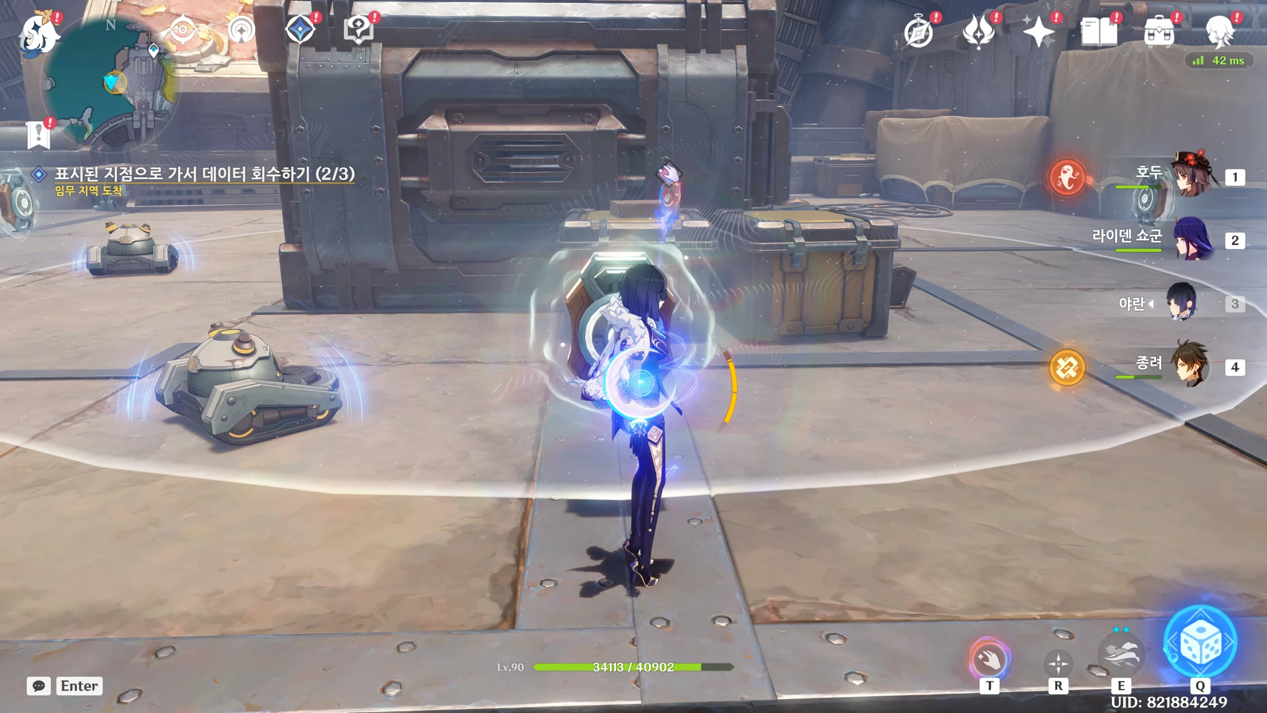 배리어 안에 갇히는데 T를 눌러 땡겨주면