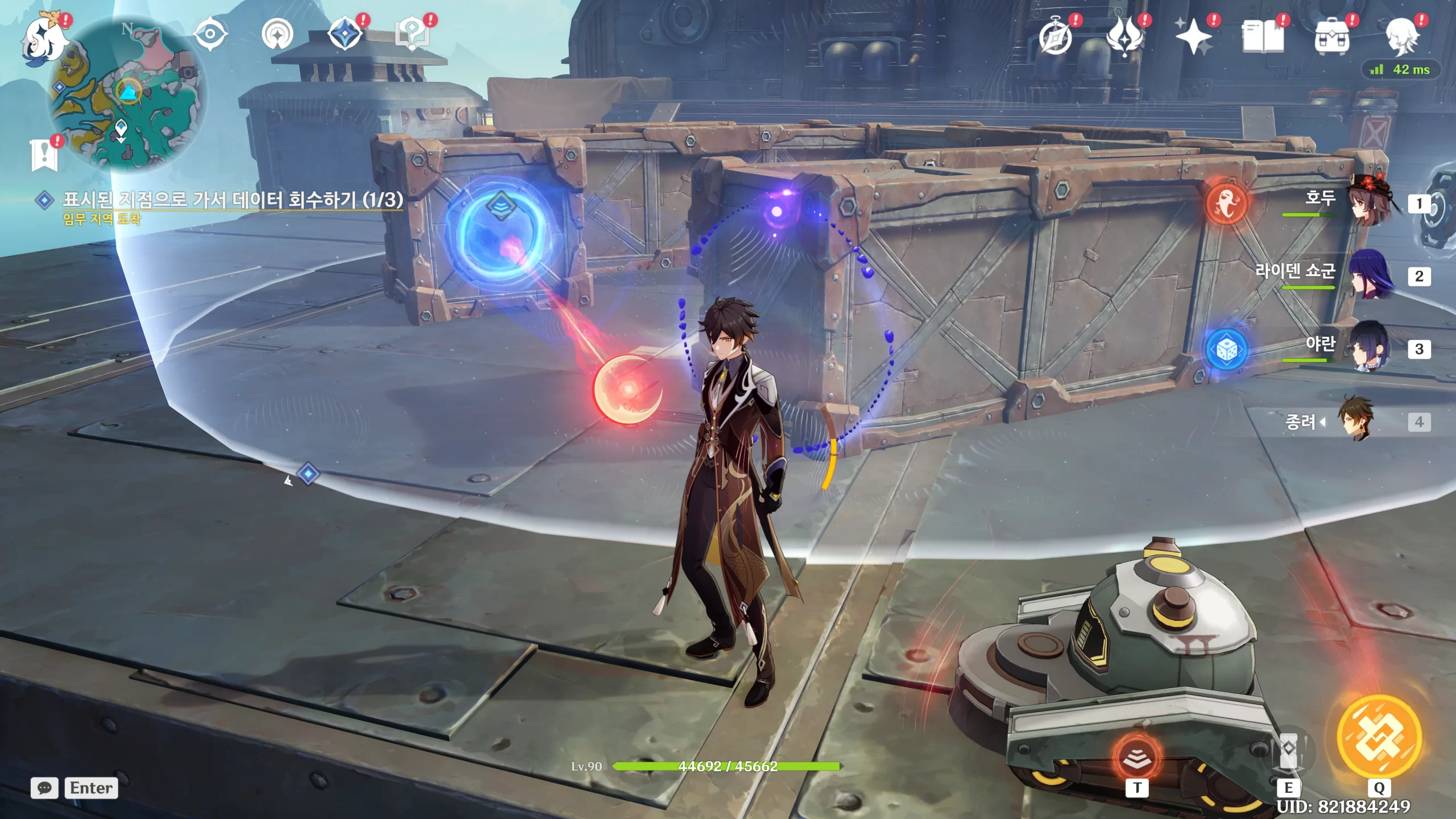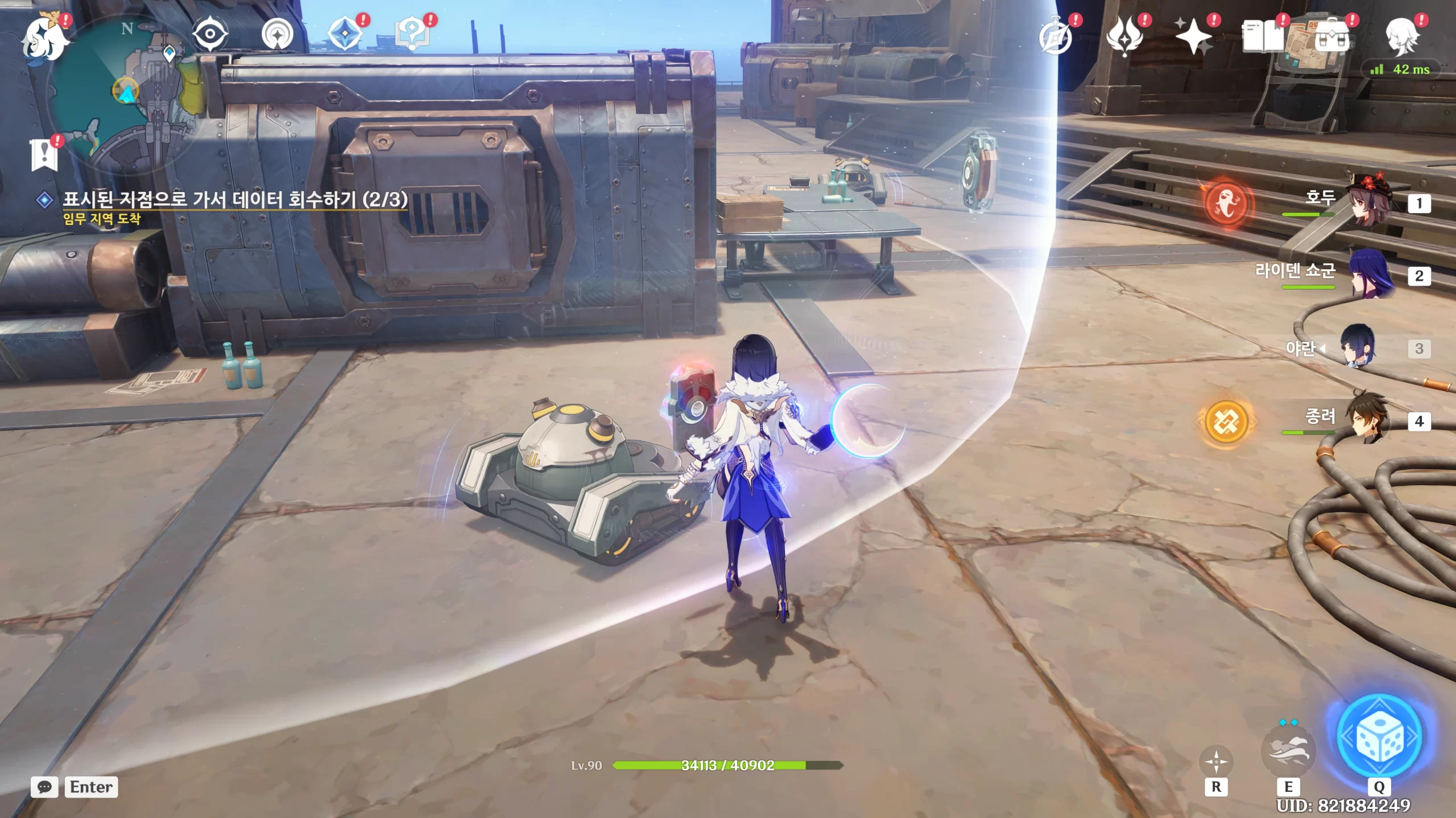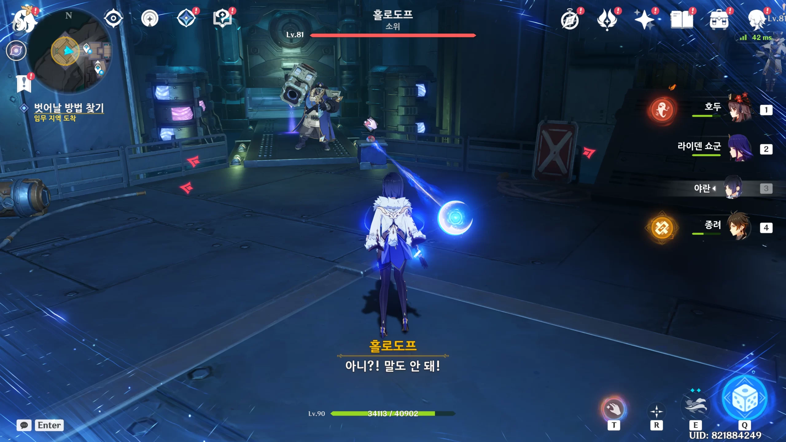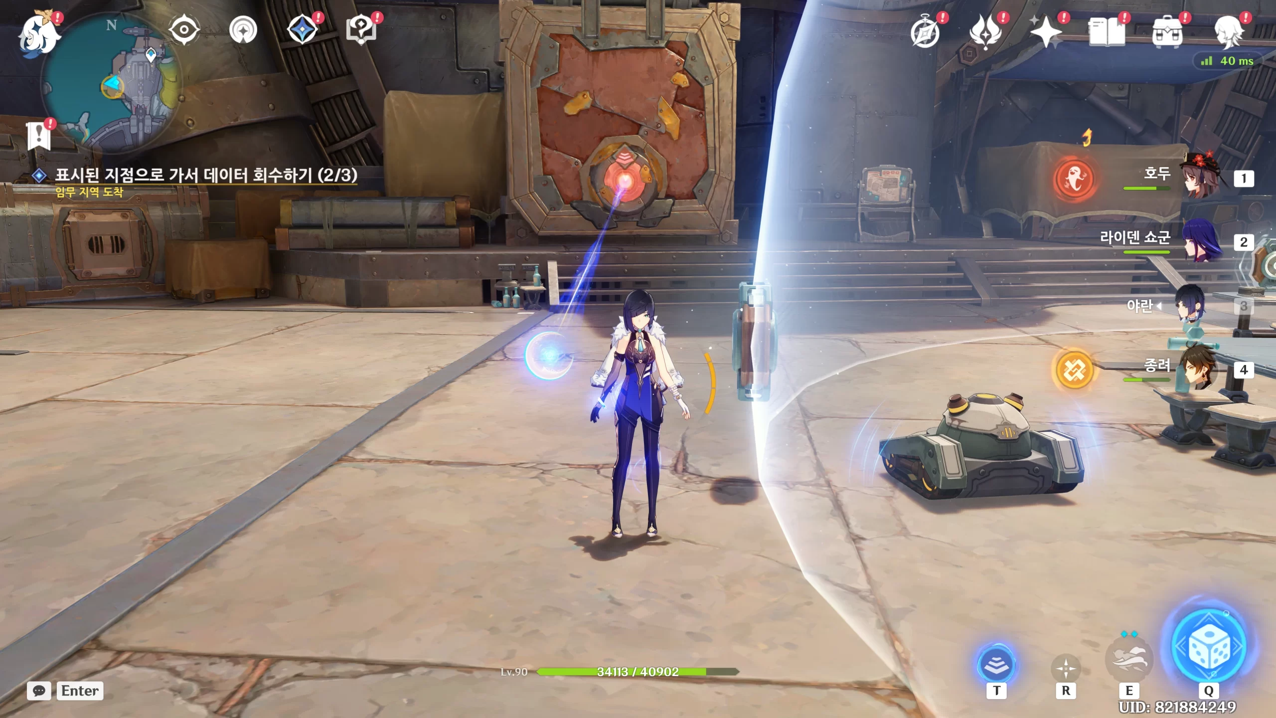 배리어 안에 갇히는데 T를 눌러 땡겨주면
