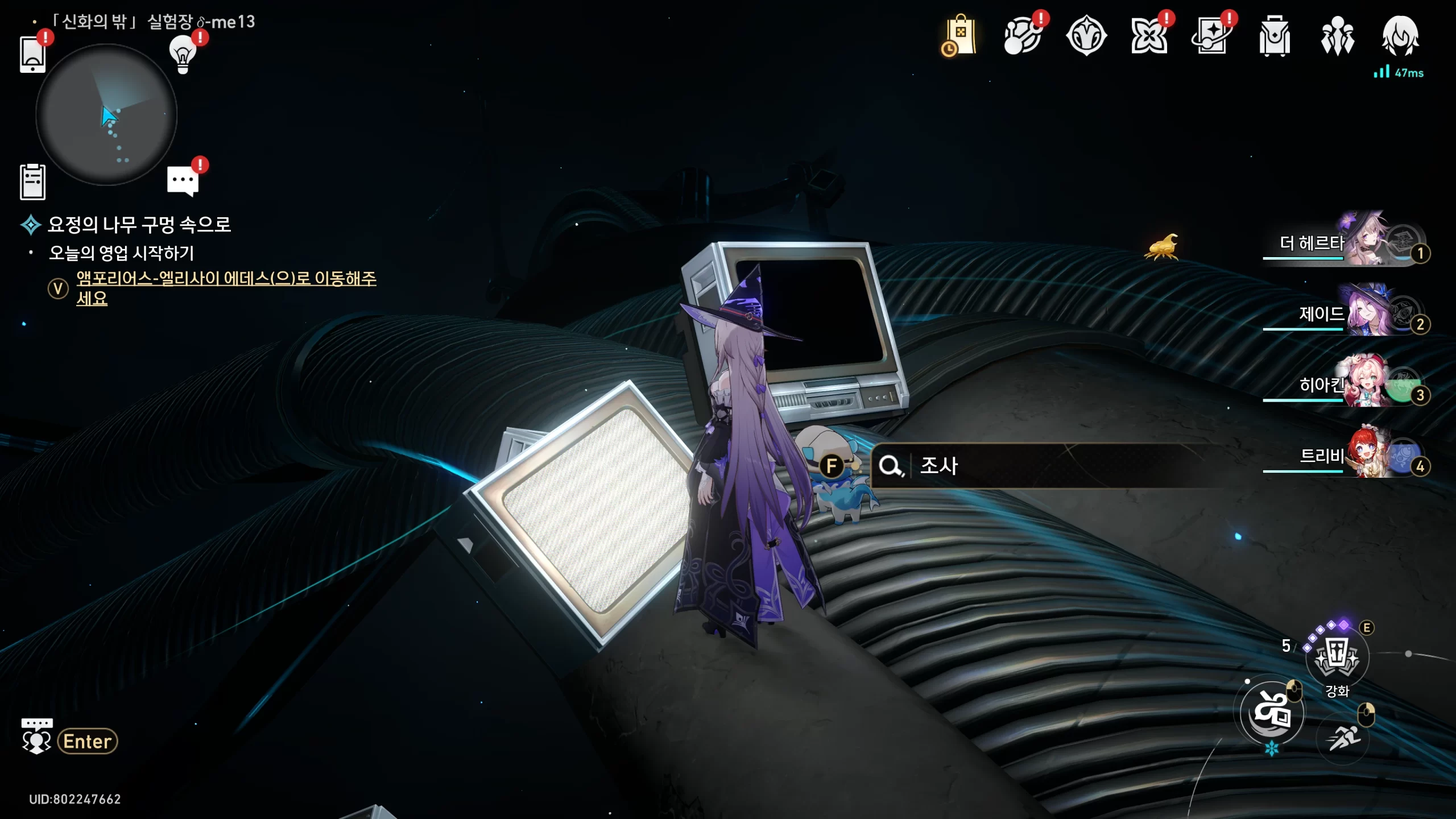 신화의 밖 실험장으로 들어간 다음