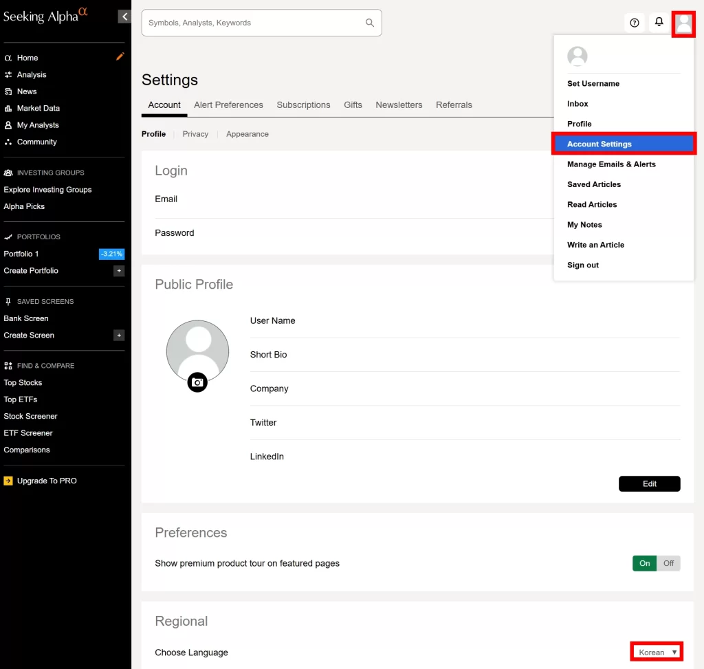 Seeking Alpha Premium을 사용한다면