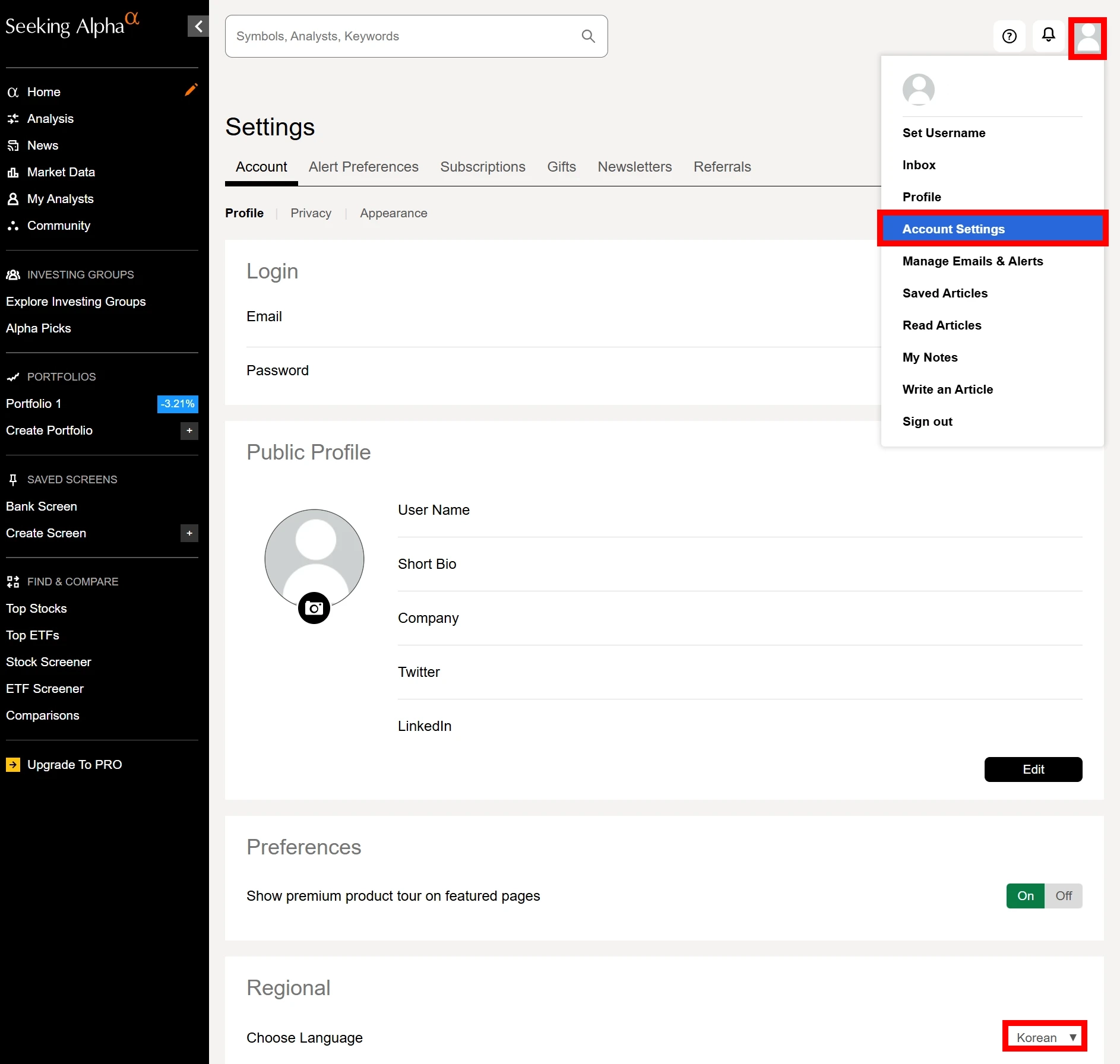Seeking Alpha Premium을 사용한다면