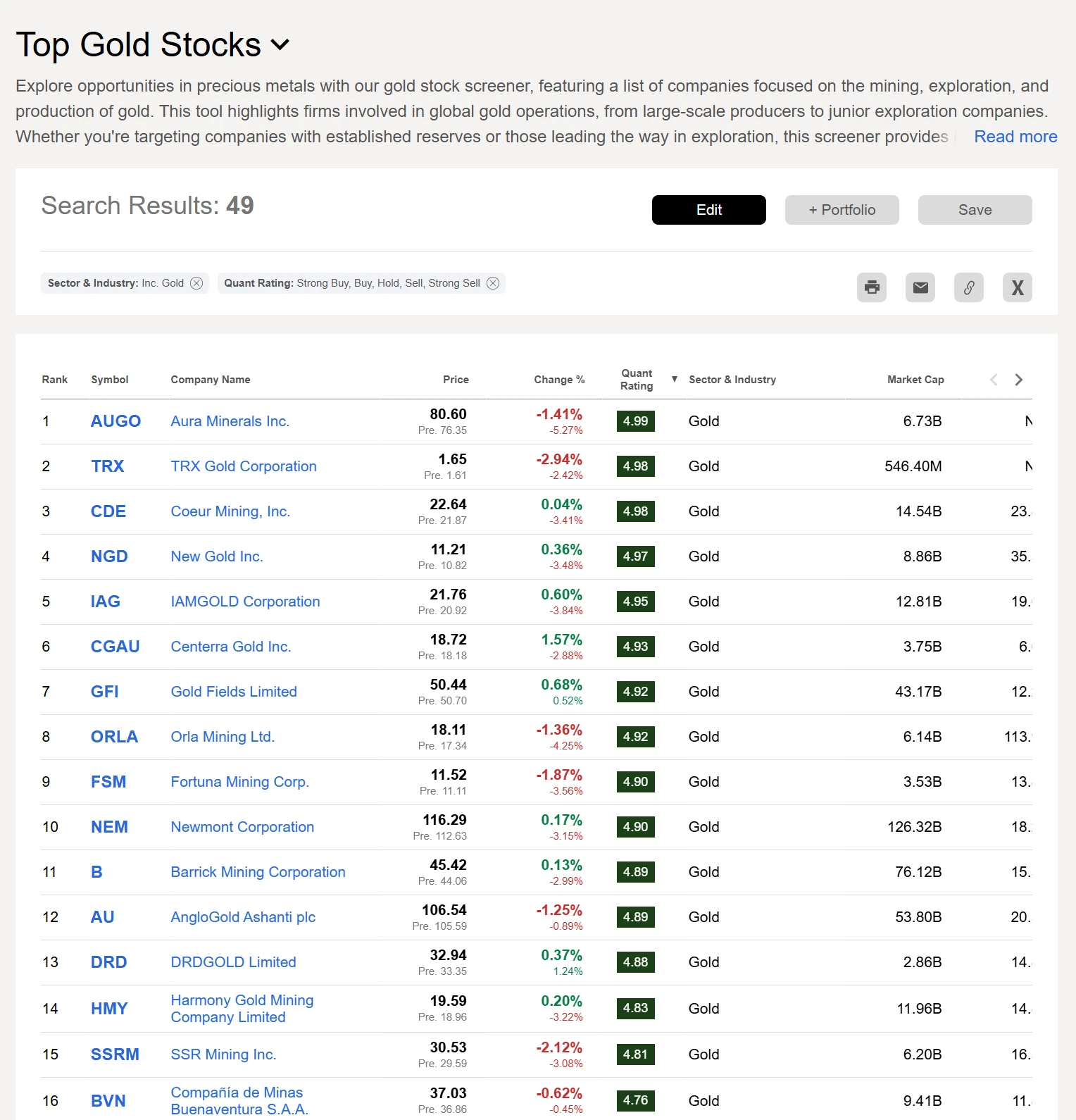 보면 CDE, NGD, GFI, B, SSRM은